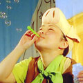 僕なりに「三びきの子ぶた」を読むと、一番面白いのは上のお兄ちゃん二ひきをぱくぱくっと食ったオオカミが最後に末っ子ぶたに食われちゃうこと。生きものっていうのは、本当はどっちが良い悪いじゃなくて、強いやつもいれば弱いやつもいる、でっかいやつもいればちっちゃいやつもいる、それが、お互いに命を奪い合って生きているという、そういう矛盾をはらんでいるわけね。食物連ということだけれども、考えてみると、ぼくらはいろいろな生きものの命をもらって生きているし、どの生きものも草食、肉食に関係なくそうしている。こんなことを考えることで、生きることの本当の楽しさ、おかしさってのを、観る人に感じてもらえるんじゃないか、と思ったの。